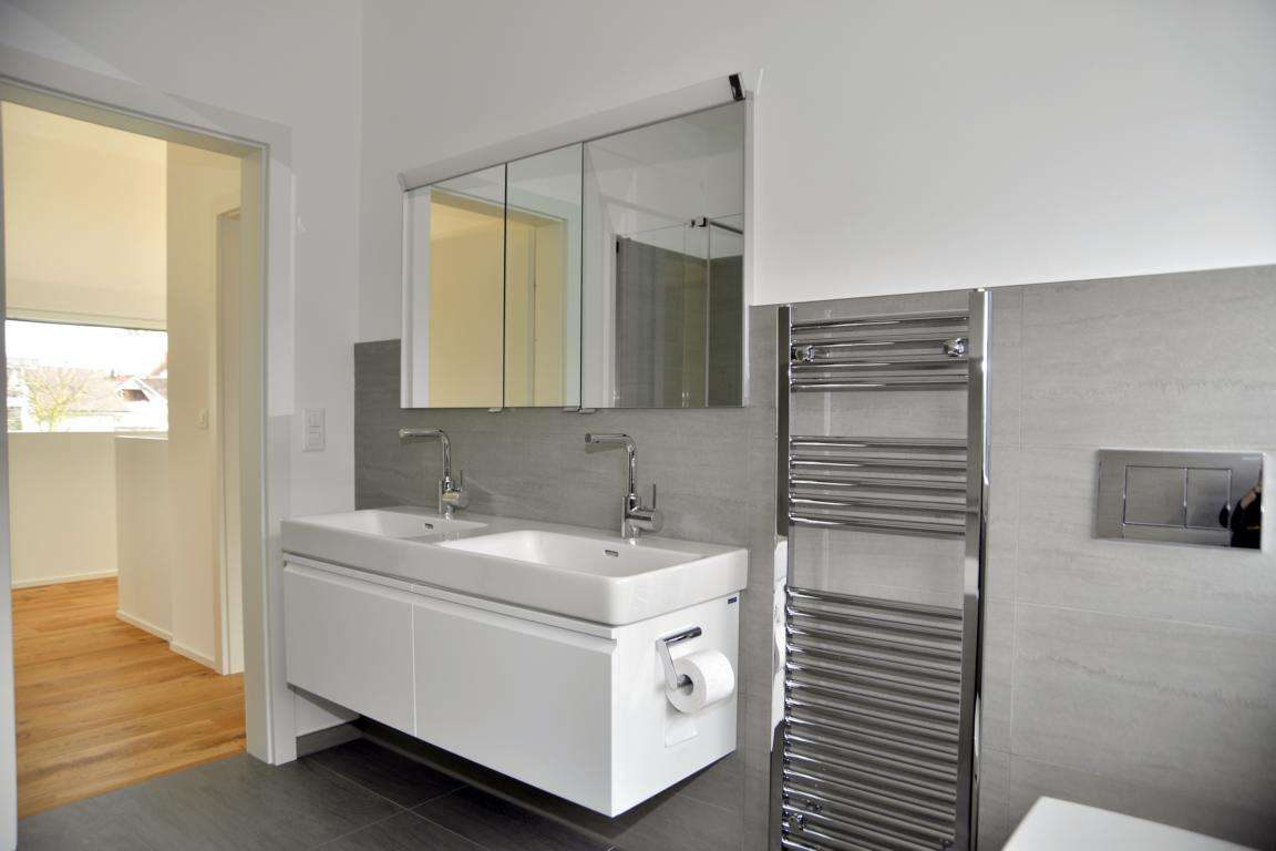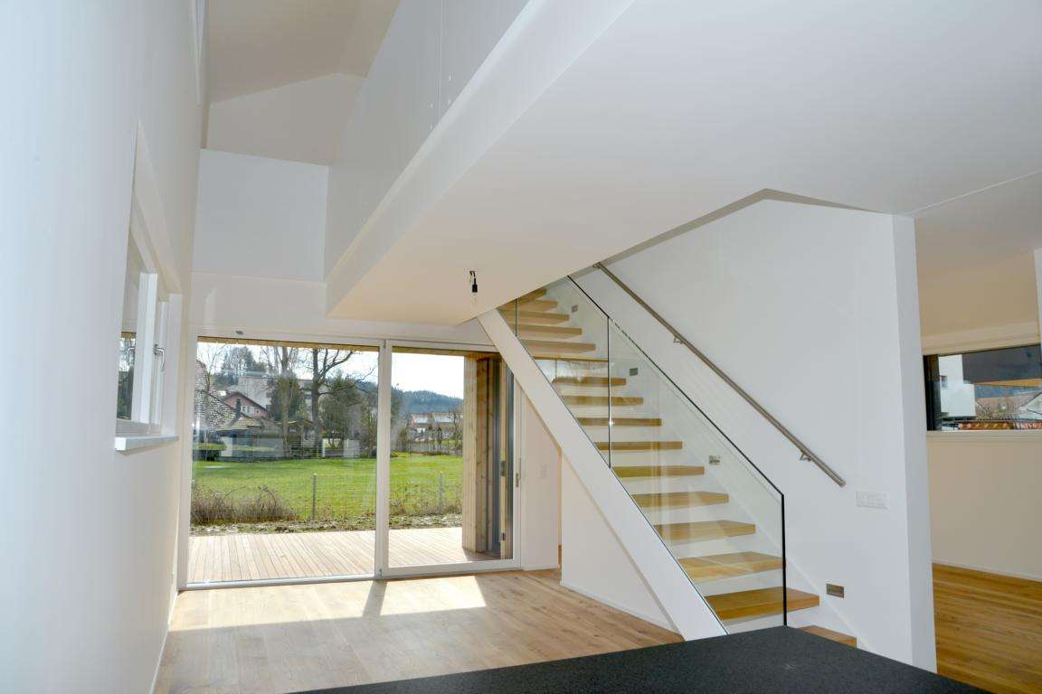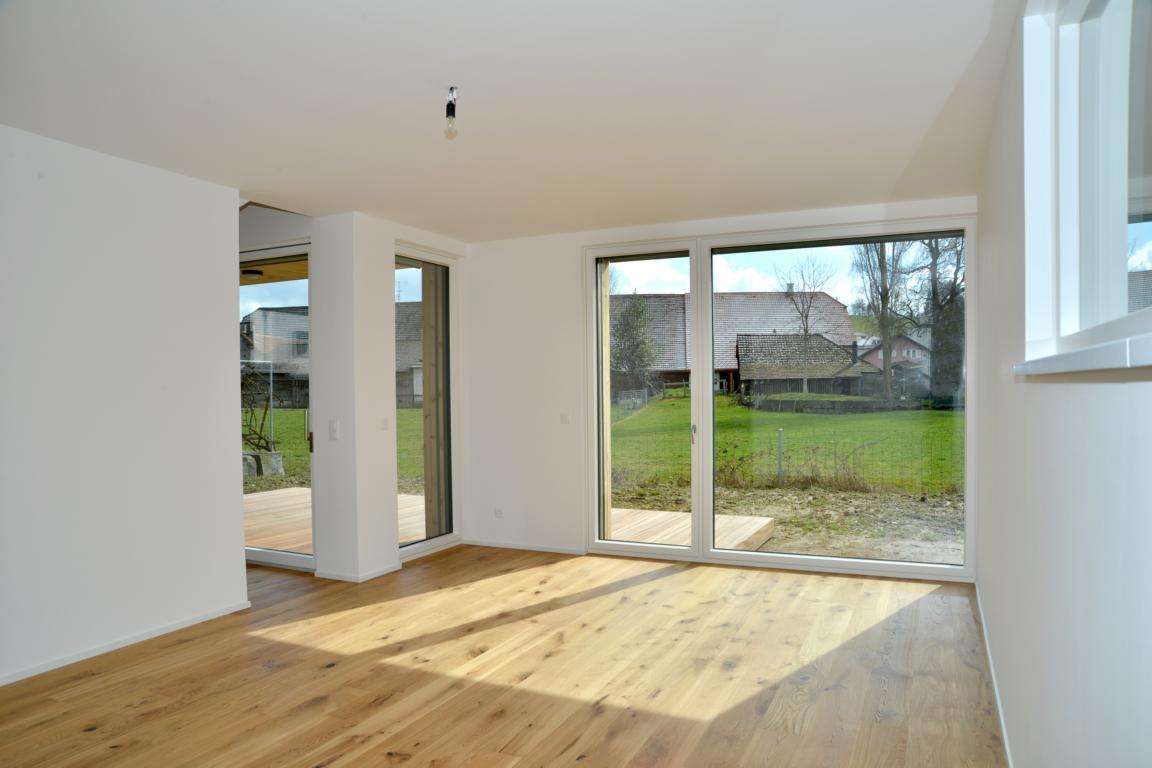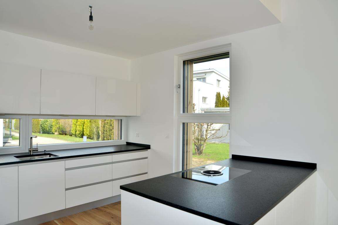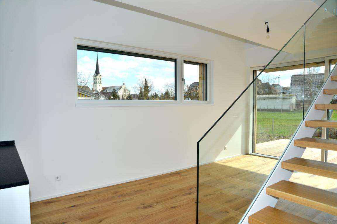Im Erdgeschoss befindet sich die topaktuelle, offene Küche mit angrenzendem Essbereich und direktem Zugang zum Sitzplatz. Das helle und sonnige Wohnzimmer mit grossflächiger Fensterfront runden das funktionelle Interieur ab. Darüber hinaus finden Sie ein Reduit mit Garderobe, ein Gäste Bad mit grosser dusche und die Waschküche.